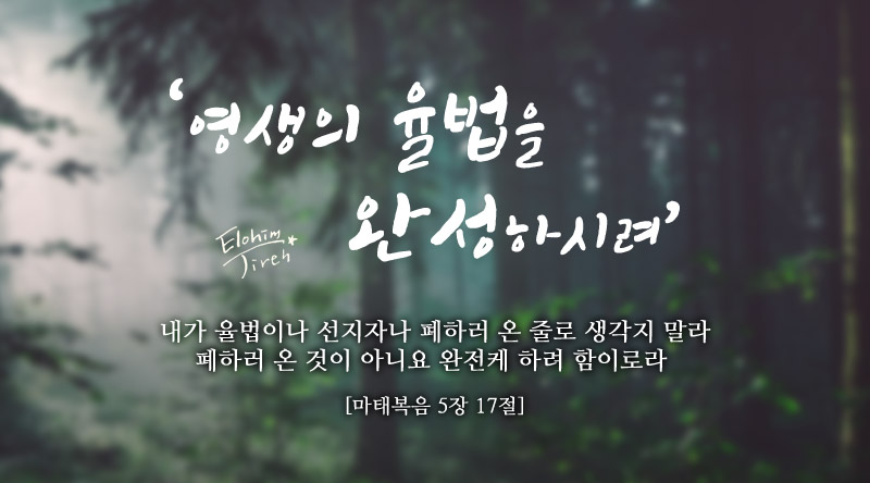 마태복음 5장 17절 내가 율법이나 선지자나 폐하러 온 줄로 생각지 말라 폐하러 온 것이 아니라 완전케 하려 함이로다 |