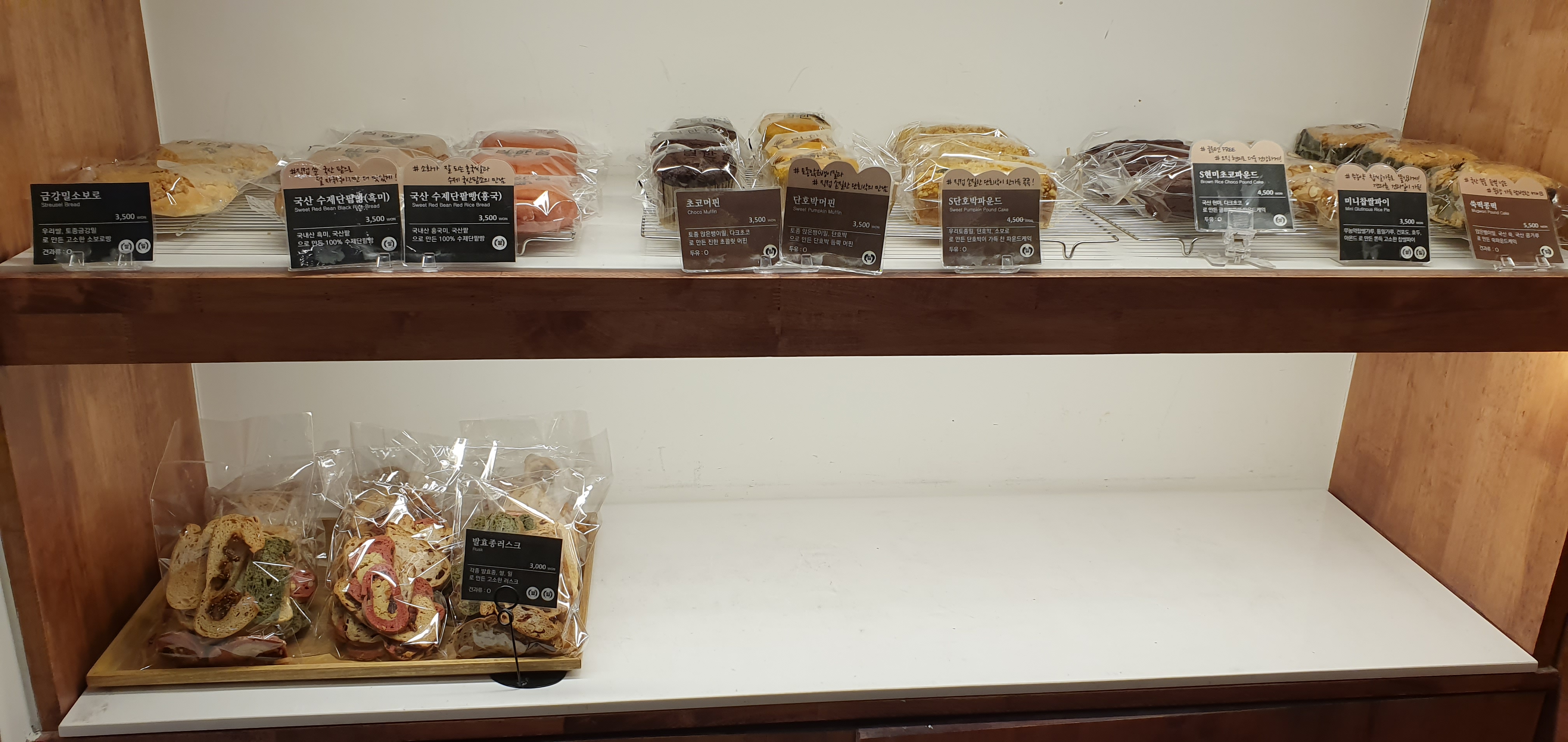 위에는 깜파뉴 종류(무화과,호밀흑임자,블루베리,비건치즈,곡물,단호박견과 등등)