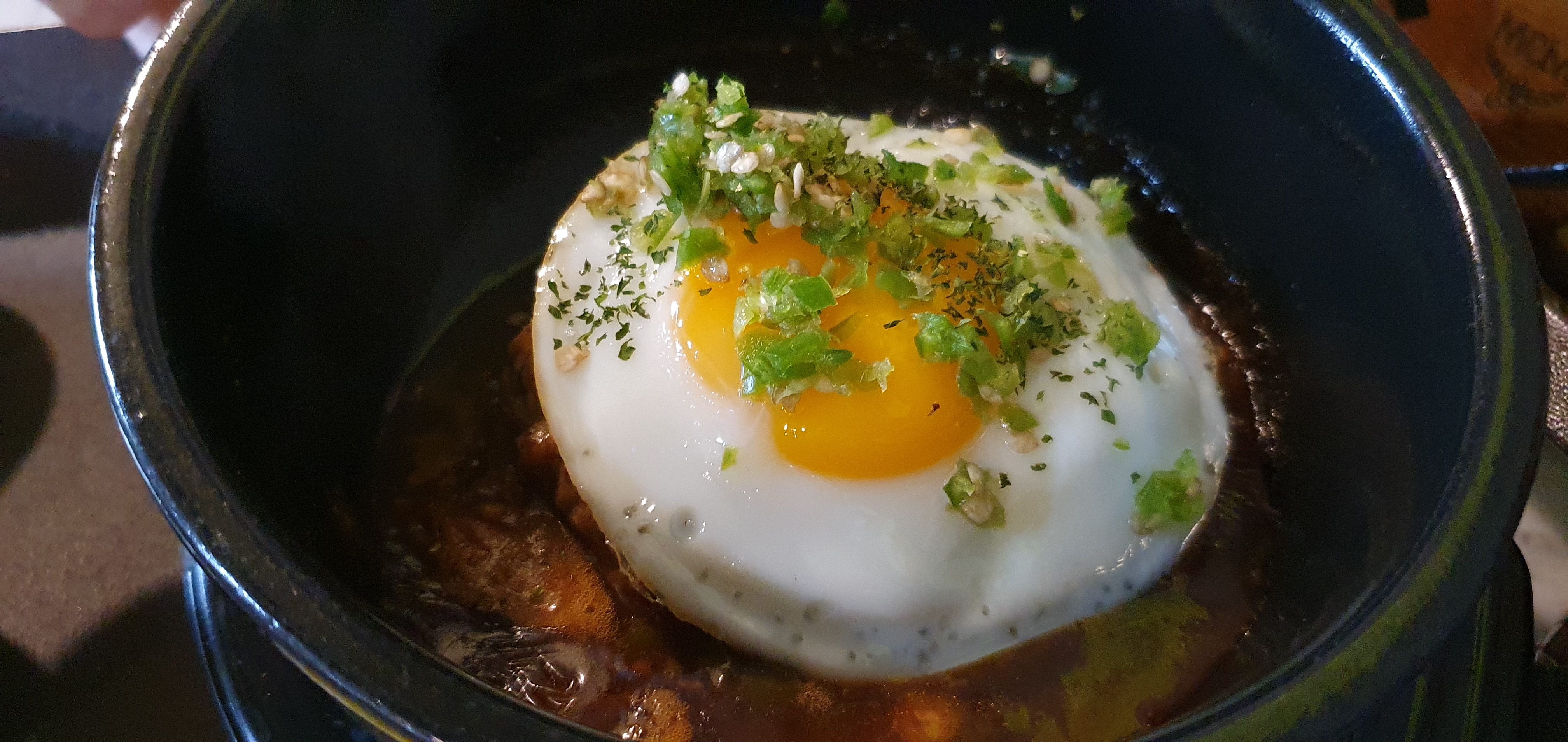 고추함박 굉장히 두툼한고기와 반숙계란,땡초의 조합