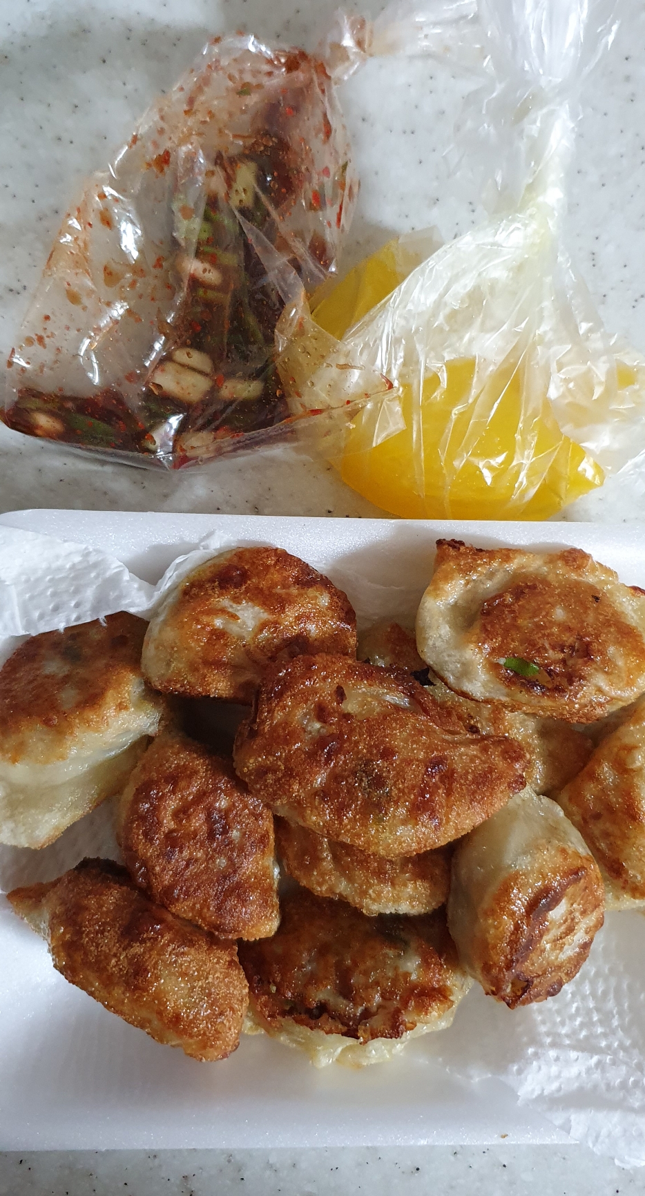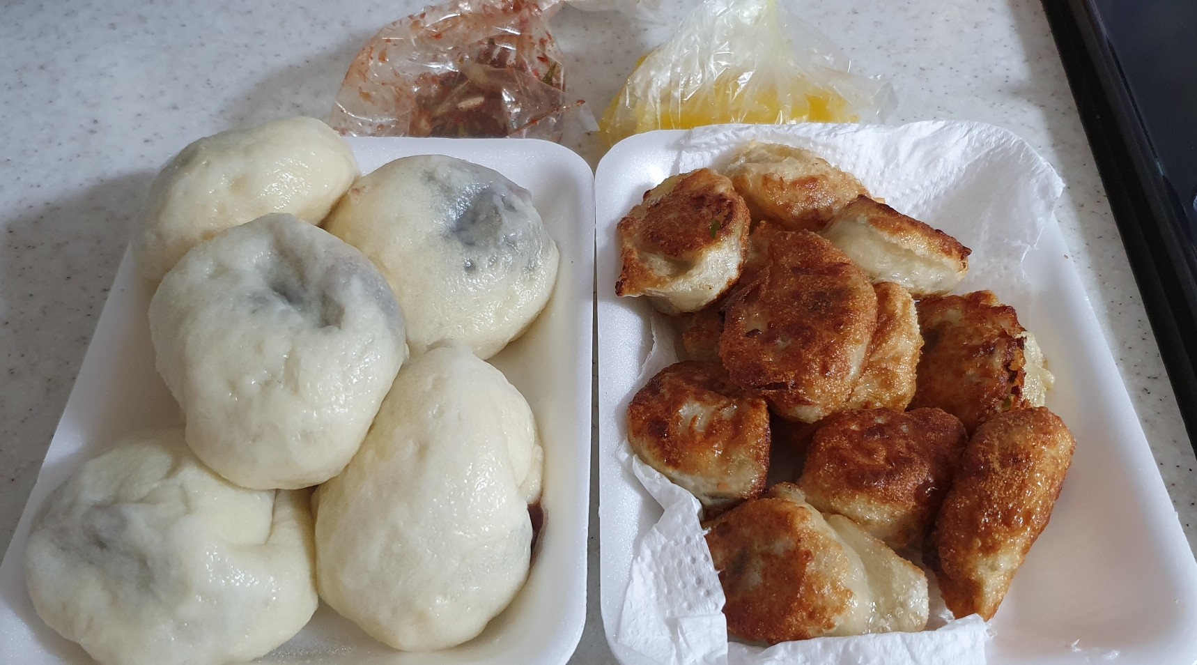 군만두와 찐빵입니다