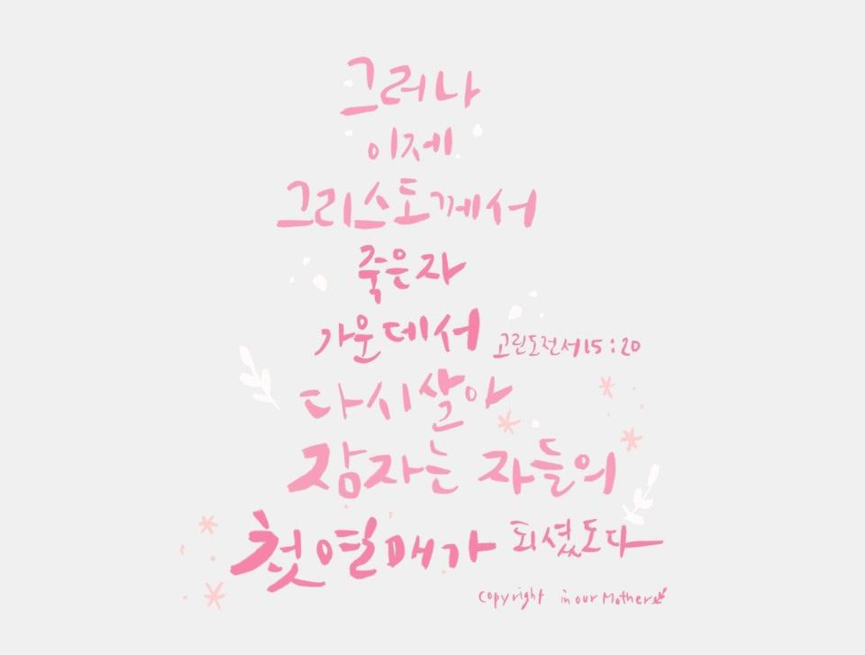 고전 15장 20절 그러나 이제 그리스도께서 죽은 자 가운데서 다시 살아 잠자는 자들의 첫 열매가 되셨도다