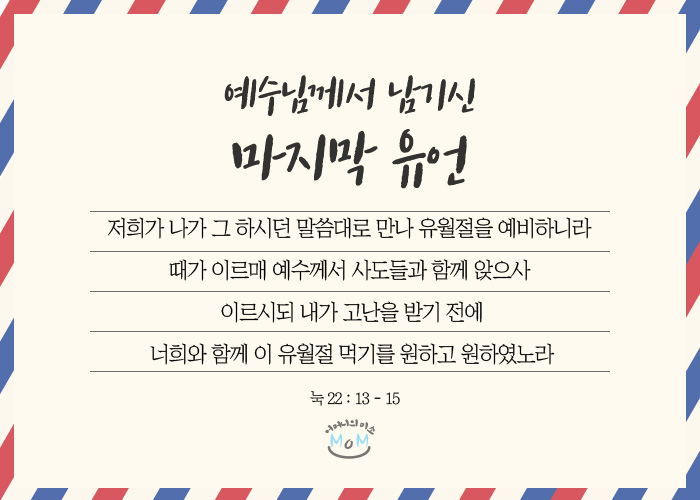 신약시대 구원자이신 예수님께서도 유월절을 지키라고 명하셨습니다