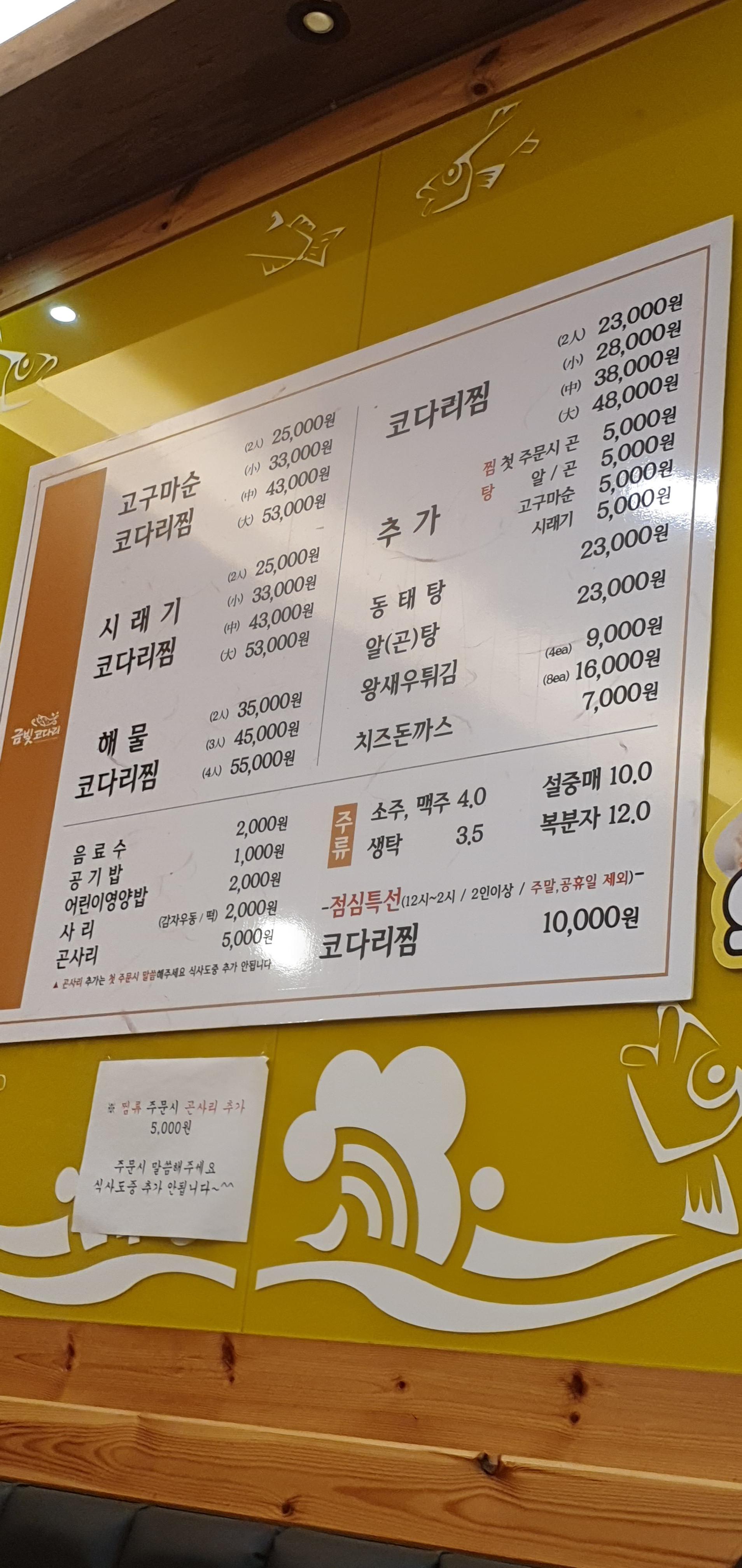 새우튀김,동태탕,알탕 등 다른 메뉴도 있구요~~