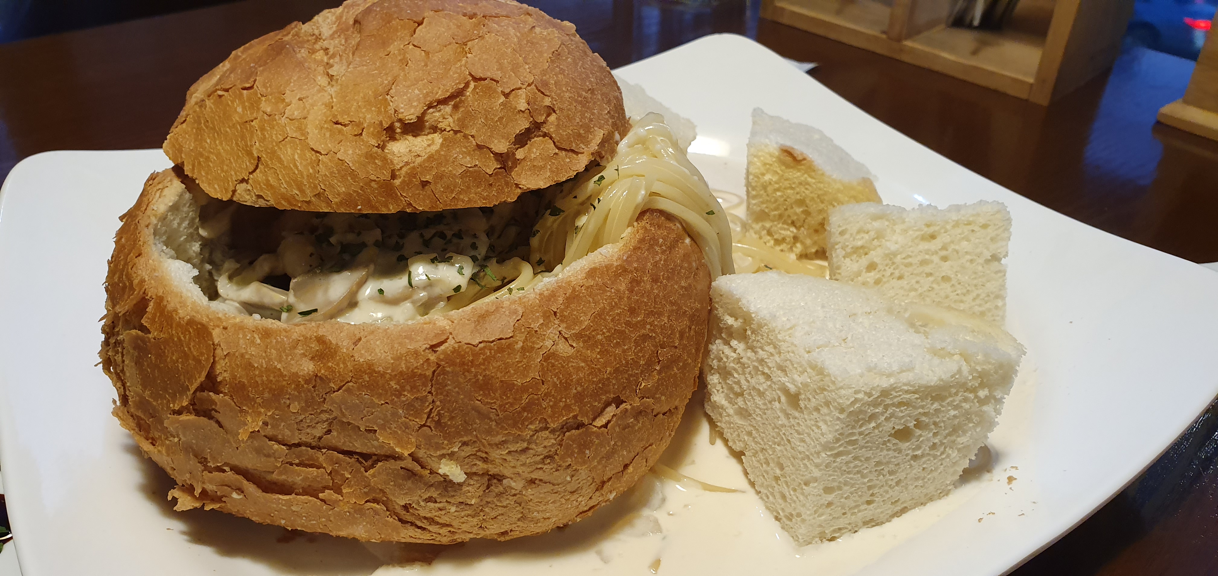 화덕에서 구운 빵 속에. 담긴