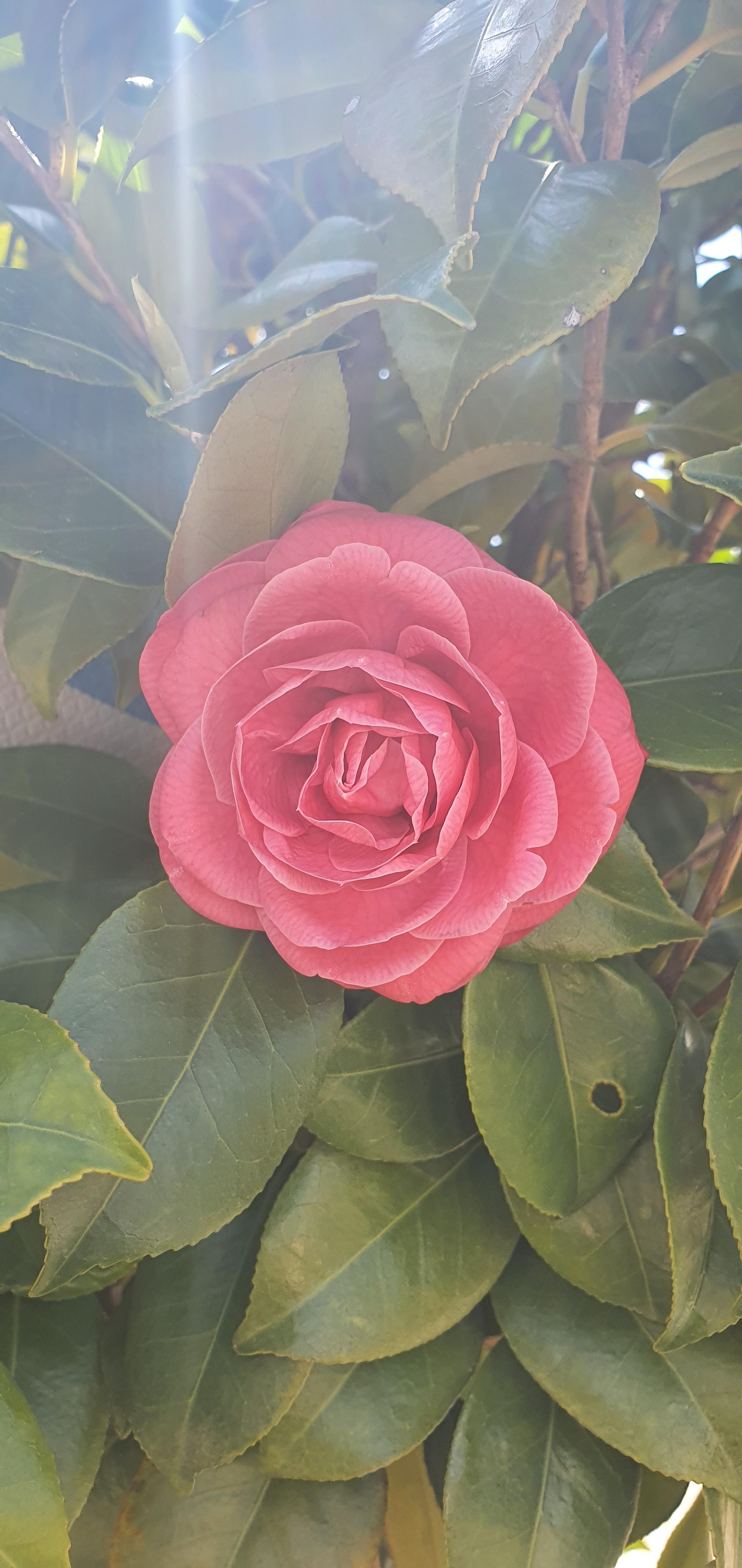 햇빛을 받은 동백꽃