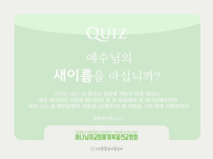 '나'는 예수님입니다 나의 새 이름은 예수님의 새 이름입니다 '예수'라는 이름이 예수님의 새 이름이 될 수는 없습니다