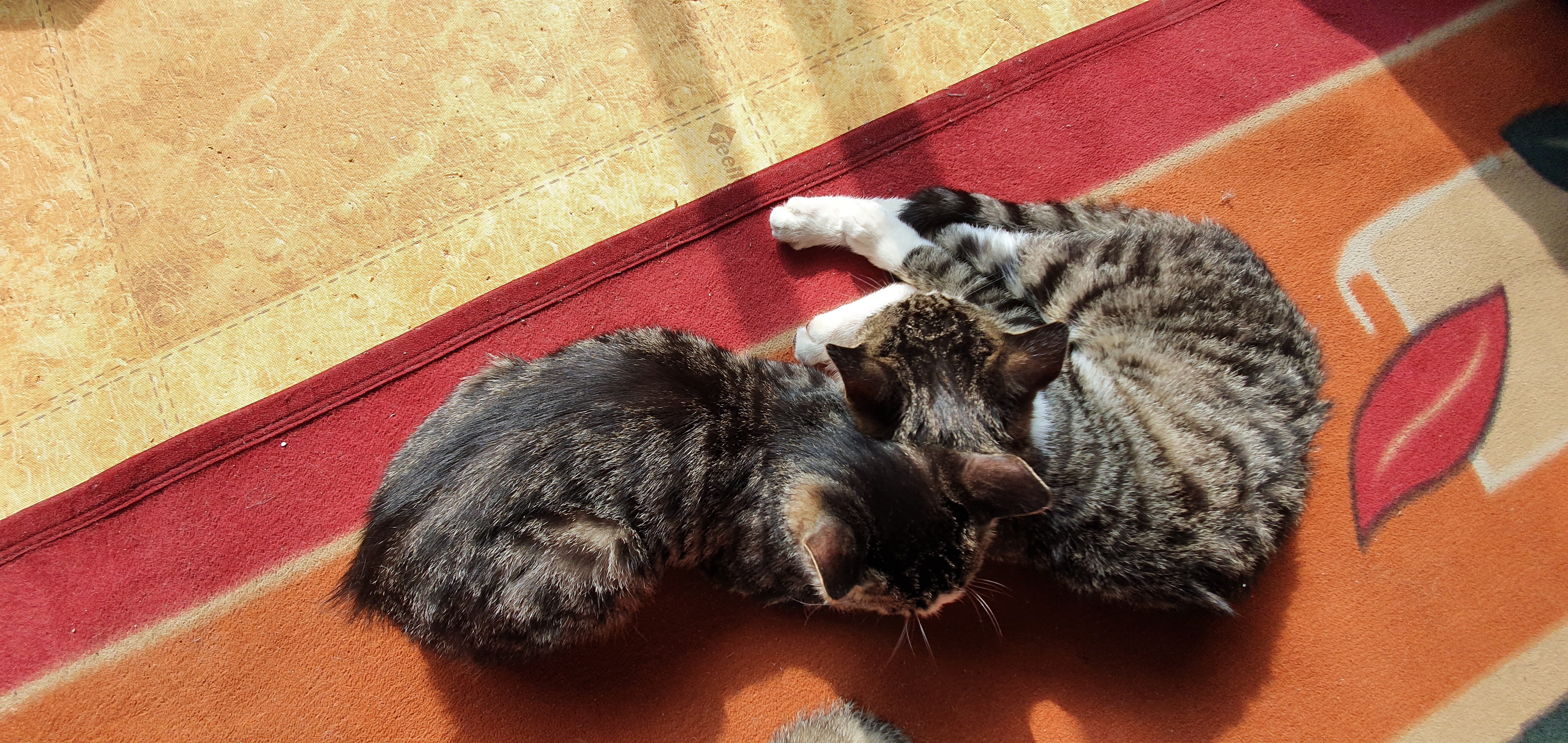 고양이 두마리가 자는데