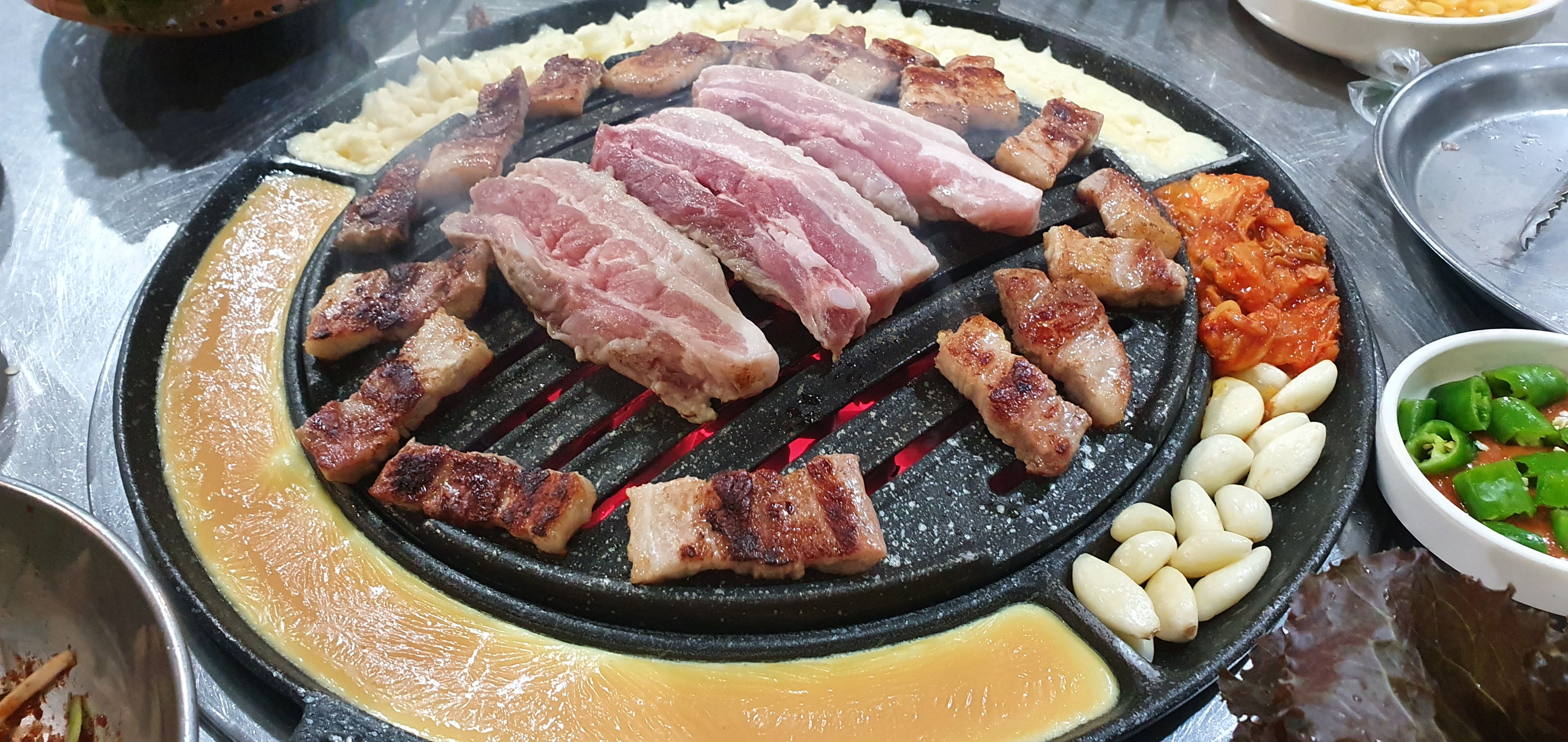 점점 계란찜? 도 익어가고 김치,마늘도 고기도 익어갑니다~~!!