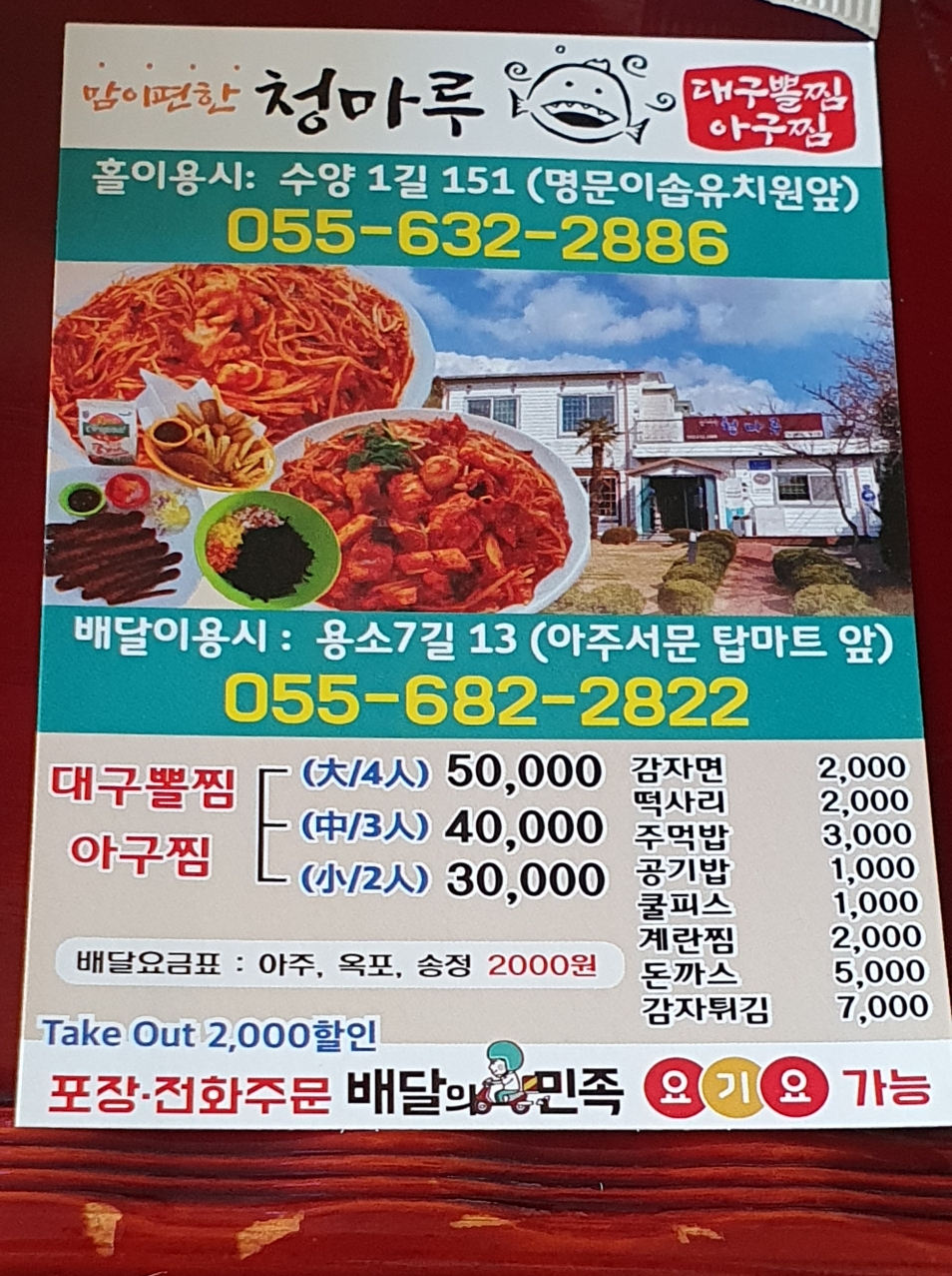 거제 배달음식 -☆ 청마루☆ 대구뽈찜,아구찜 전문점. 거제맛집 청마루