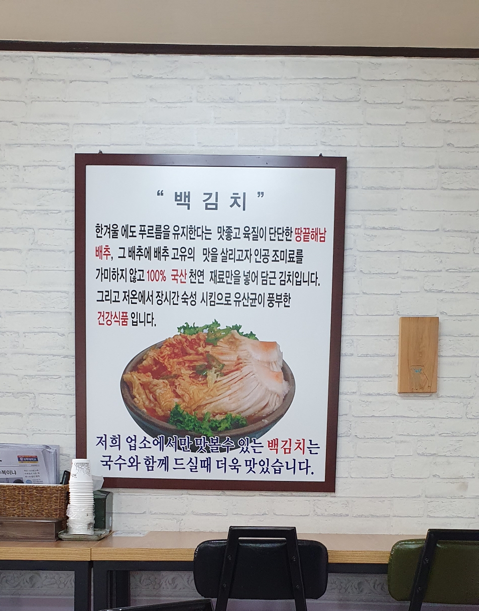 국수 먹을 때 백김치를 줍니다