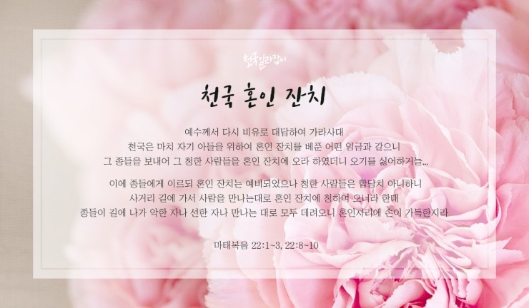 예수님은 우리가 구원받는 것을 혼인 잔치에 참여하는 것으로 비유하셨습니다