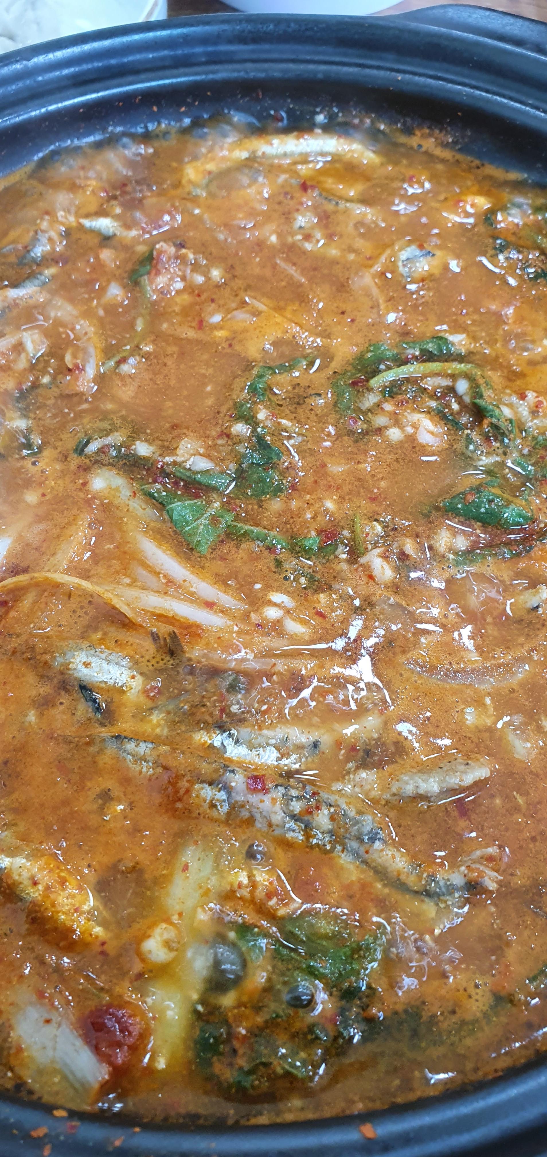 마늘이 듬뿍 올라간 멸치를 끓인 매운탕느낌ㅋㅋㅋ