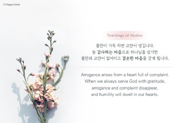 늘 감사하는 마음으로 하나님을 섬기면 불만과 교만이 없어지고 겸손한 마음을 갖게 됩니다