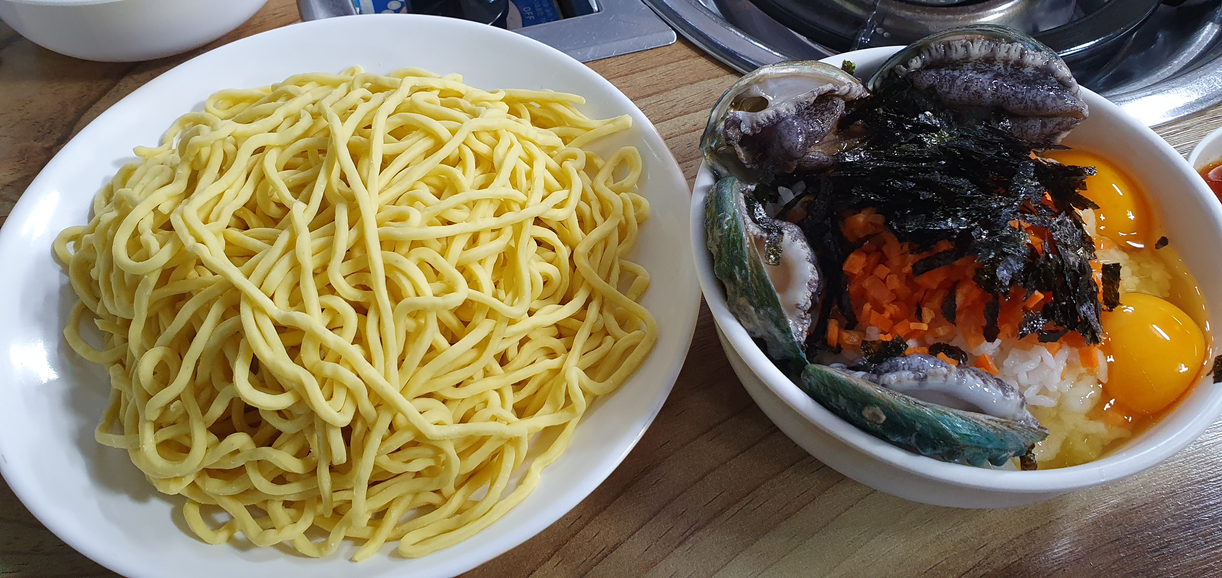 소고기+전복죽+칼국수+야채
