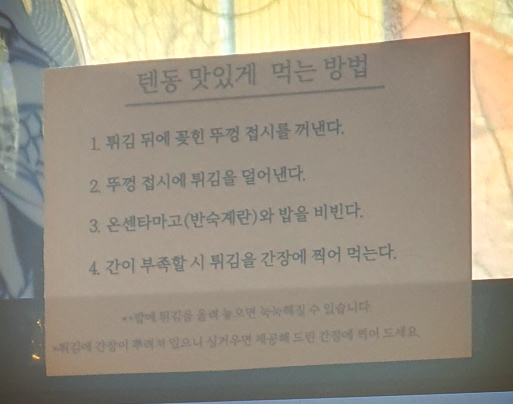 텐동 맛있게 먹는 방법이 기록되어 있어서 참고하면된다