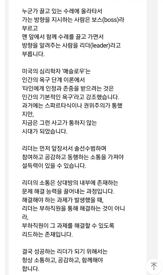 좋은글 공유) 보스(boss)가 아닌 리더(leader)가 되도록 노력하자