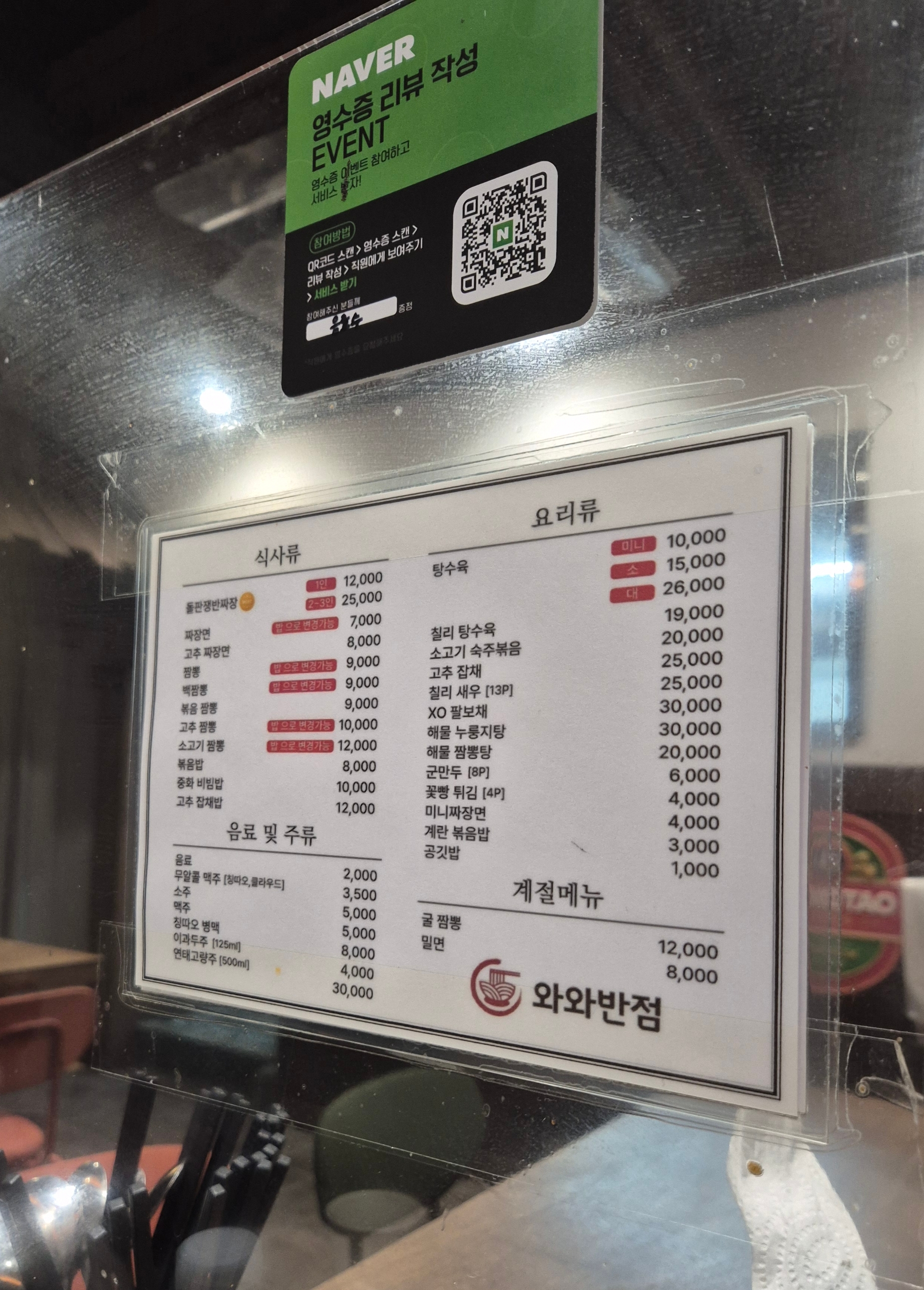 와와반점 메뉴